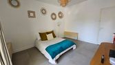 Grande chambre lumineuse avec accès direct au jardin. Porte fenêtre donnant une terrasse couverte. Une table…