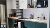 L'appartement est idéalement situé, à 750m du métro Roseraie et 900m du métro Jolimont et proche de toutes commodités (centre commercial, boulangerie, marché, écoles, bus). De nombreuses places de parking sont disponibles et gratuites au pied de l'immeuble. Un espace parc naturel tout nouveau est de plus en train d'être créé à 2 rues de l'appartement.