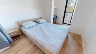 Les chambres meublées (14-16 m²) possèdent un bureau, lit double et placard de rangement.