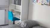 Chambre indépendante et bien agencée avec bureau, rangement avec penderie et étagères, toilettes et salle de…