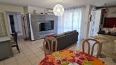 Carrelage en grès émaillé avec plinthes assorties dans les pièces de vie, SdB, WC et parquet dans les chambres.