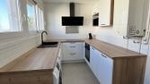 cuisine partiellement équipée de placards, plaques chauffantes et hotte aspirante