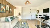 L'appartement se compose de trois pièces, dont deux chambres spacieuses. Le salon lumineux est un espace convivial où vous pourrez vous détendre ou recevoir vos amis. La cuisine est entièrement équipée (plaques de cuisson / rangements / hotte aspirante).