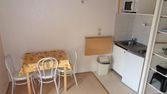 Entrée séparée salle de bains baignoire pièce de vie cuisine équipée sur balcon