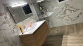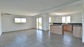 - Rez de chaussée : * 2 terrasses * garage * entrée avec interphone, placard * WC * cuisine fermée équipée éléments haut et bas, plaque vitrocéramique, hotte, emplacement four, emplacement lave-vaisselle, * grand séjour en "L" traversant et lumineux-
