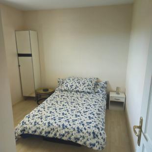 La chambre fait environ 10m2 avec un lit-tiroir, un placard avec rangements, repeinte l'ete 2021, grande fenetre sur nature, calme ...