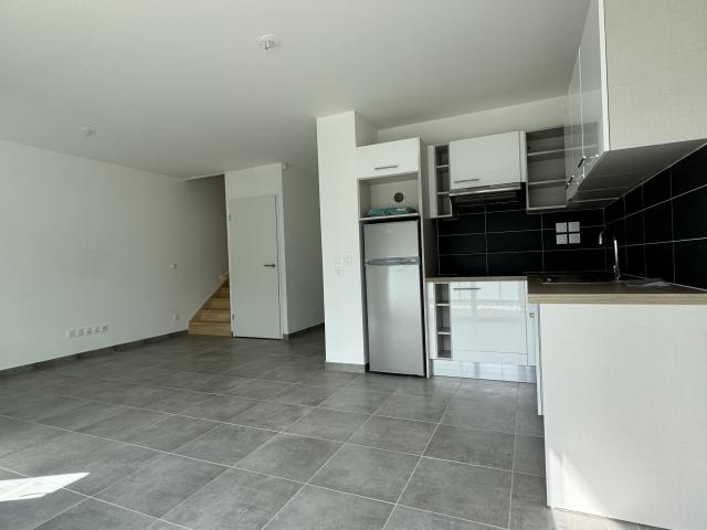 Joli duplex de 69m2 dans résidence sécurisée. Au premier niveau grande pièce à vivre avec cuisine équipée (plaque vitrocéramique, hotte, frigo et placards) donnant sur une terrasse avec vue dégagée ...
