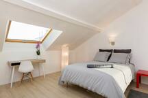 Chambre de 15 m2, lit double et rangements