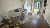 Cuisine indépendante équipée, coin repas + TV murale