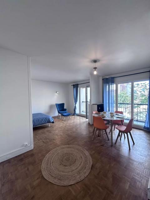 Appartement meublé calme au 9e et dernier étage dans une résidence sécurisée (entrée avec badge, ascenseur). Balcon sympathique avec vue au loin de la Tour Eiffel. Nombreux commerces en bas de la ...