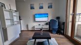 L'appartement comporte une entrée, une salle de bain, une cuisine avec plaques, four, micro-ondes, frigo, lave-linge séchant et un salon avec canapé rapido (matelas confort plus), tv, armoire penderie, sécrétaire/bureau, tables et chaises, ouvrant sur un long balcon sud-ouest qui donne sur des cours et jardins.