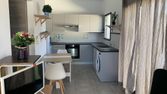 Il s'agit d'un F2 de 35 M2 et une terasse environ de 13m2. Il y a une cuisine équipée, plaque à gaz, et un Frigo. Puis aussi une machine lave linge.