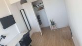 Chaque chambre est meublée de la même manière avec lit double (1,40), bureau moderne et placards rangement. Télévision individuelle, accès internet compris dans les charges. Accès à la machine à laver le linge et à une grande cuisine au 1er étage.