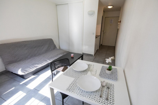 Studio de 18 à 20m² meublé et équipéNotre appart hôtel de Montpellier est situé à seulement 10 minutes en voiture des plages de Palavas et Carnon. Notre résidence se compose de studios meublés de 20 à 48 m2 pour 2 à 6 personnes.