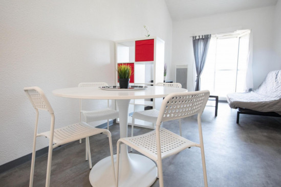 T1 duplex de 31m² meublé et équipéNotre appart hôtel de Montpellier est situé à seulement 10 minutes en voiture des plages de Palavas et Carnon. Notre résidence se compose de studios meublés de 20 à 48 m2 pour 2 à 6 personnes.