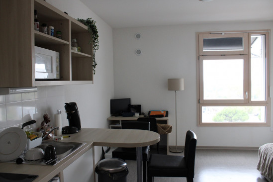 T1 bis de 37m² meublé et équipé avec balconRésidence neuve (ouverture 1er septembre 2019), studio et T1 Bis meublés et équipés : salle de bain avec douche, cuisine équipée (plaques, frigo et micro-ondes), lit, bureau. Inclus dans votre loyer : Internet très haut débit (100Mbps max), eau froide et eau chaude. La plupart des appartements dispose d’un balcon (300 jours de soleil par an en moyenne à Montpellier).