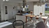 Nouveauté Belle maison récente construction Année 2014, de plain pied, type 3, Cuisine aménagée, pièce de vie, environ 35m2, buanderie (ballon thermodynamique), couloir, W.C, Salle d'eau en excellent état (douche à l'italienne), 2 chambres avec placards ( 12m2) Terrasse, cour avec stationnement, pelouse, abri de jardin. Terrasse