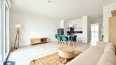 Résidence récente "Le Hameau de la Chevalerie", à 10 minutes à pied de l'arrêt de tramway Trois Rivières - A louer Type 3 offrant une entrée avec placard, un séjour avec cuisine ouverte aménagée et équipée, un beau balcon de 9 m², deux chambres, une salle d'eau , wc séparés et une place de parking extérieure privative.