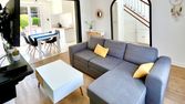 - Cuisine équipée d'un frigo, congélateur, four, cafetière, plaque de cuisson + étagères de rangement pour les aliments secs. Nous n'avons pas de four micro-ondes.