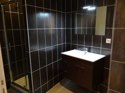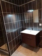 étage: 2 chambres, salle de bain avec douche italienne et meuble de rangement.