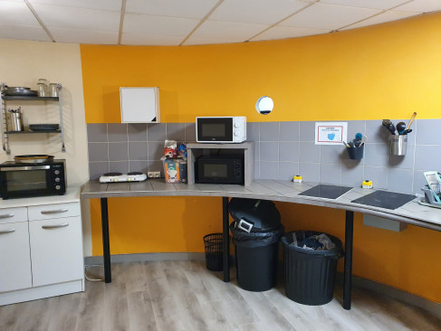 Chaque logement possède un coin cuisine équipé (frigo, micro-ondes, 2 plaques électriques, bouilloire, cafetière (sur demande) nécessaire de vaisselle) et une salle d’eau privative.