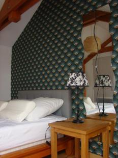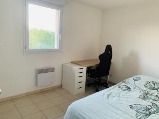 Chambre de 12 m2 composé d'un lit double 160x200, d'un grand bureau, de tiroirs ainsi que d'une penderie avec étagères.