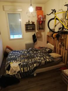 la chambre disponible fait environ 10m2 et possède une petite armoire