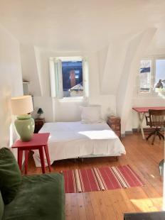 Grande chambre lumineuse de 28 m2 , grand lit double ou 2 lits simples, bureau, fauteuils, divan, dressing placard