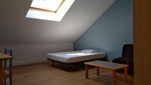 Elle fait 13m² et équipée d'un lit 160 avec sommier/matelas, un bureau et une table de chevet.