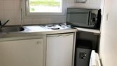 Une pièce de vie avec coin kitchenette équipée :