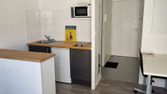 Equipé de kitchenette dont 2 plaques électriques, frigo, placard de rangement, micro-ondes,