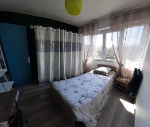 La chambre libre (à louer) fait 14m² avec un lit double.