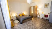 L'appartement est situé au centre ville dans une rue à sens unique très calme. Il est équipé dans la pièce principale d'un BZ, d'une armoire, table, bancs. . Le logement possède un lave linge. Double vitrage et très bonne isolation. 1er étage.