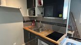 il se compose d'une cuisine équipée avec plaques de cuisson et réfrigérateur