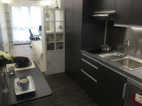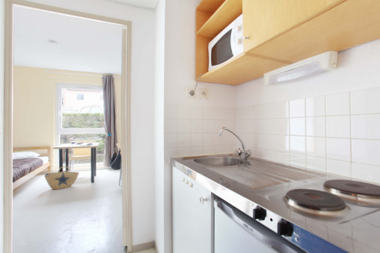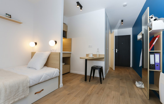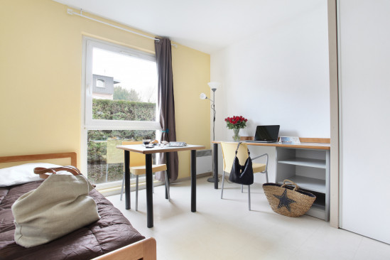 Résidence étudiante à Reims, proposant des logements étudiants de type studio et T2 meublés et équipés. Les logements disposent tous d'une kitchenette, d'une salle d'eau privative avec douche et WC, d'un coin bureau et d'un lit.
