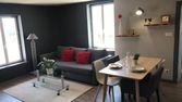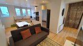 - D'une pièce de vie principale avec espace cuisine ouvert (plaque de cuisson gaz, four électrique, four micro-onde, hotte aspirante, réfrigérateur-congélateur, éléments de rangement, vaisselle, etc.) et espace repas