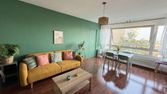 L'appartement est composé d'un salon, cuisine ouverte entièrement équipée (frigo congélateur, lave vaisselle, four, plaque induction, machine à café, micro-ondes, bouilloire, nombreux rangements), une salle de bain avec lave linge.