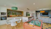 🍽️ cuisine équipée avec lave linge séchant, réfrigérateur, induction, micro-ondes, four, machine à cafe, grille pain, vaisselle, …