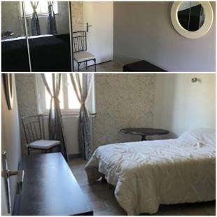 Chambre meublée comprenant : 1lit 140X190 cm 1 frigidaire 1 micro-ondes 1 dressing 1 bureau 1 bouilloire 1 lavabo De la ...