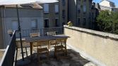 Terrasse privative pour les locataires. Il y a 3 chats à la maison, mais ils n'ont pas accès aux chambres.