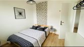 Chambre meublée comprenant : 1lit 140X190 cm 1 frigidaire 1 micro-ondes 1 dressing 1 bureau 1 bouilloire 1 lavabo De la vaisselle et 2 paires de draps fournis.