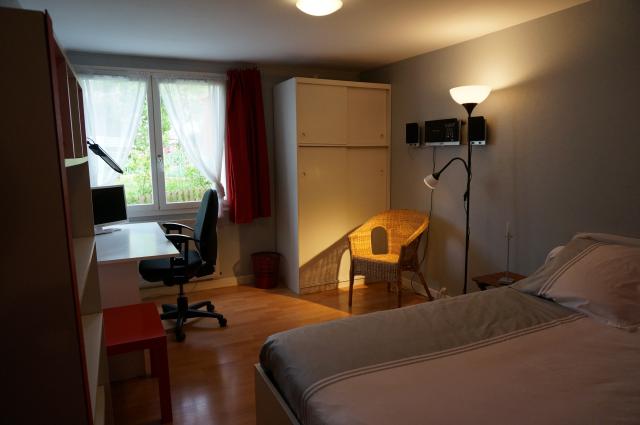Chambre équipée du grand lit. Télé wifi ....armoire bureau.....espace de vie ..avec table chaise vaisselle micro ondes frigo cafetière théière ...proche transport en commun ....marche le ...