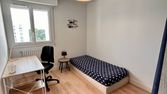 Meublée, elle dispose d'un lit, un bureau, placard et lavabo. Au dernier étage de notre maison, 60m2 se partage en 2 chambres, une cuisine et une salle de bain.
