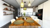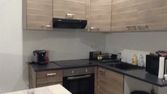 Vous disposerez d'une pièce de vie lumineuse tout équipée avec un canapé-lit et une cuisine meublée et équipée neuve haut de gamme.(plaque induction, frigo, congélateur, four, lave vaisselle, hotte)