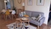 Appartement constitué en plus d'1 salon (où je dors), une cuisine, une salle de bain (lave-linge), WC séparé, propre, immeuble prisé que par des voisins calmes et discrets.