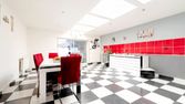 Cuisine lumineuse de dix mètres carrés avec de tout pour cuisiner, réchauffer, stocker… deux wc et une salle de bains à partager avec 4 locataires, je vis au rez de chaussée de façon autonome. En 2016, il y a eu une grande rénovation, avec l'isolation maxi, et la déco refaite.