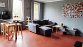 entrée, avec escalier menant aux 2 chambres, beau séjour traversant donnant sur terrasse bois, cuisine non équipée - parking 2 voitures - Les charges comprennent la consommation d'eau, l'entretien des communs, la taxe des ordures ménagères, l'entretien production d'eau chaude