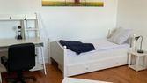 -Meublée : commode, étagère, penderie, lit une place, chaise, bureau, casier de rangement/table de nuit, poubelle, éclairage d'ambiance ou de précision, ventilateur. Espaces de rangement individuels cuisine et SDB.