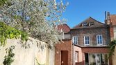 Très belle Maison rénovée 105 m² offrant séjour lumineux, salle de bain, 1 cuisine équipée et meublé, à l'étage hall, 2 chambres. Terrasse, jardin, 2 places de parking-