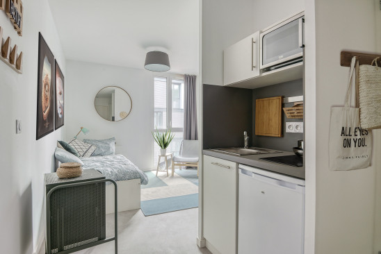Installez-vous dans un studio tout confort, situé dans un immeuble moderne à proximité immédiate des gares et des commerces. Chaque logement est entièrement meublé et équipé, prêt à vous accueillir.